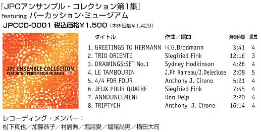 ジャパン・パーカッション・センターがお送りするパーカッション・アンサンブルのCDです。