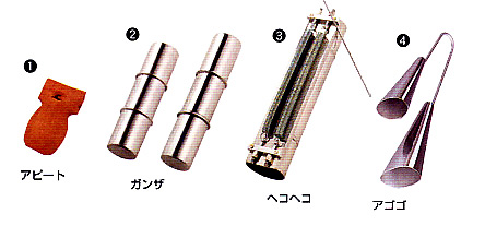 ★ヘボロ ★タン・タン ★ヘッド:各種 ★ブラジリアン・パーカッション★ ★アゴゴ★クイーカ★カシシ★ウドゥ その他:ブラジル音楽専門楽器 |